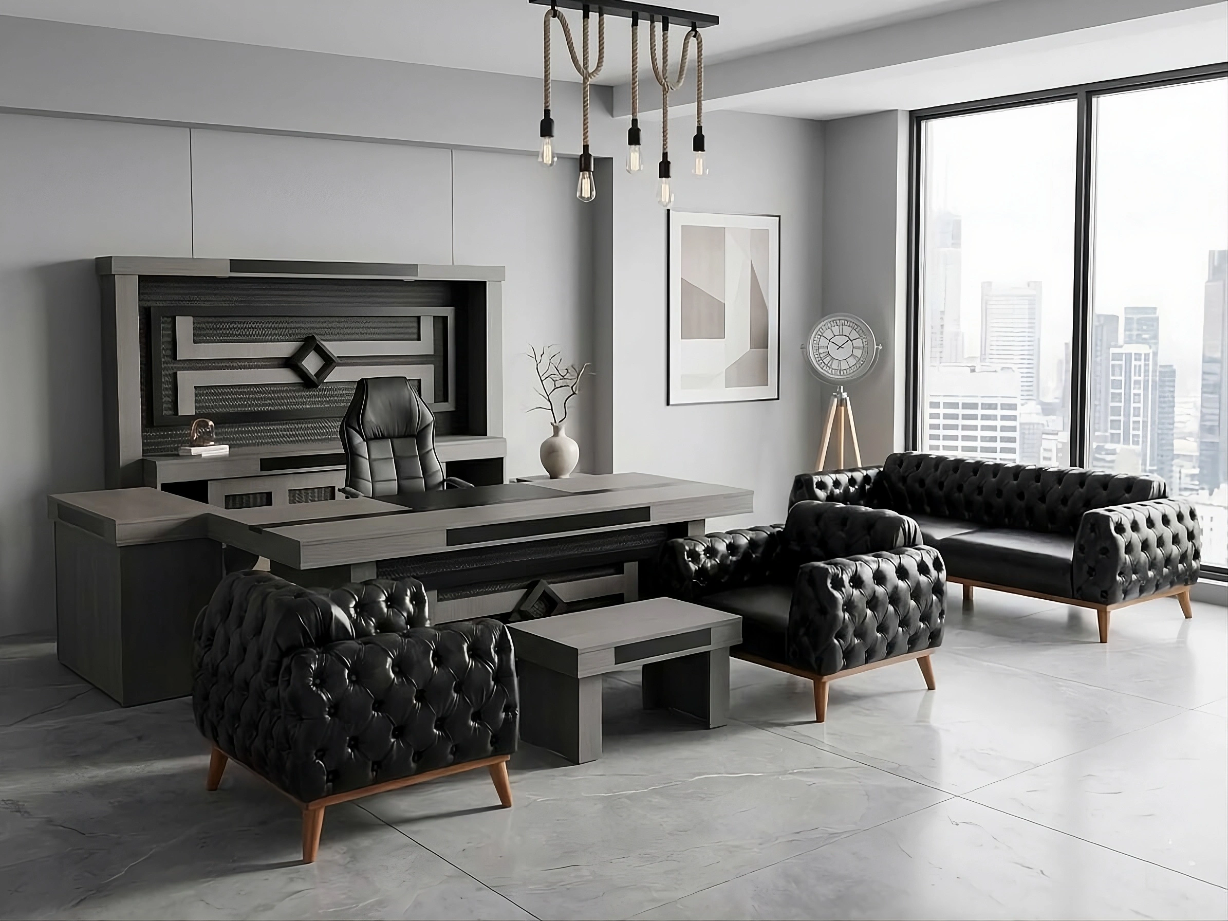 Kaliteli malzeme yapısı ve modern çizgileri ile tasarlanan Amorok Ofis Makam Takımı, yönetici odaları ve kurumsal ofisler için ideal bir ofis mobilyası çözümüdür.
