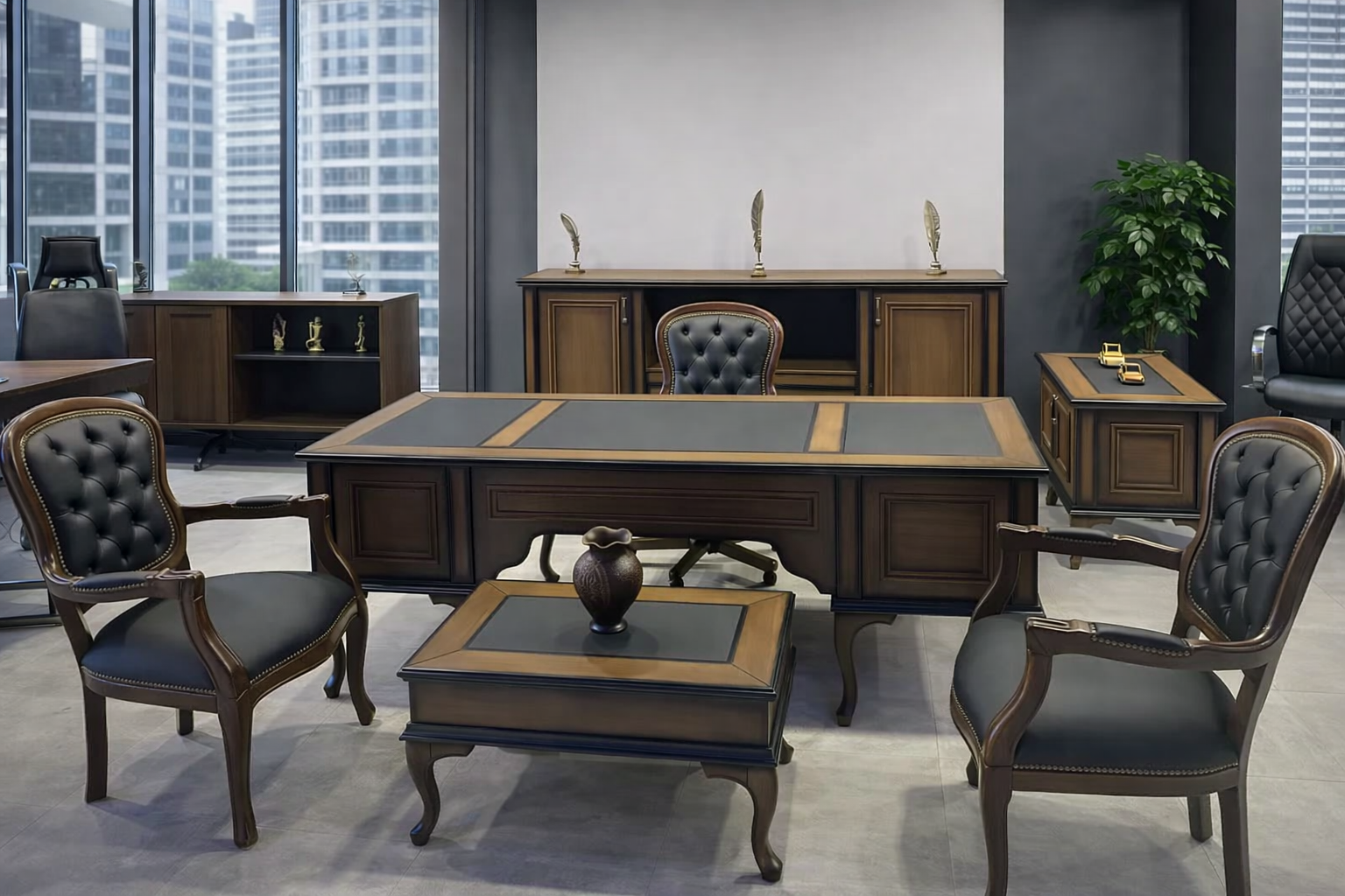 Ofisinizde güçlü bir ilk izlenim oluşturmak için tasarlanan bu lüks makam takımı,